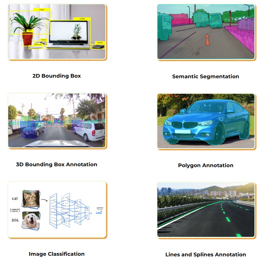 Power your object detection, classification, and segmentation models with the highest quality annotated data in the industry. We support a wide range of annotation types, taxonomies, and image formats.